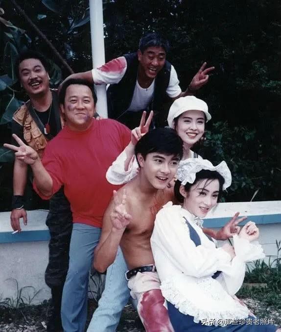 1990年,周星驰在《赌圣》剧组与友人(秦沛、吴思远、张敏、吴孟达、吴君如、元奎)的合影,都是熟悉的面孔。