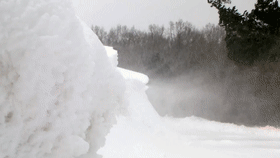 而当雪粉凝固后,在风的作用下就会卷起来