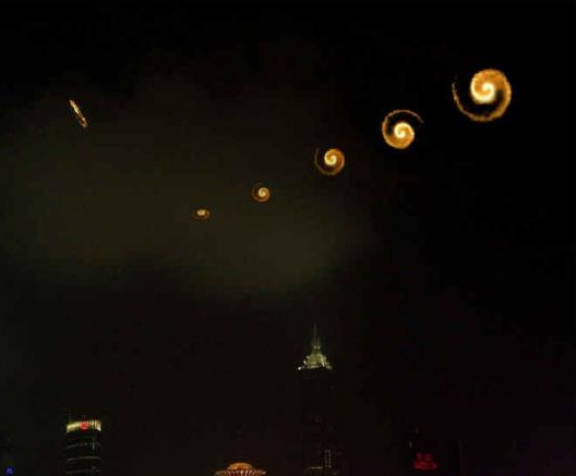 8月27日夜,19点55分左右,一不明飞行物由西北方向朝东南方向飞行。飞行物呈橘黄色,由一中心极亮点与一螺旋光环组成,在其周围,有三圈呈螺旋形的烟雾状光晕,呈顺时针方向以大约2秒钟一周的速度旋转,光晕呈淡黄色,且飞行物无声响,飞行速度很快,大约在半分钟后消失……”